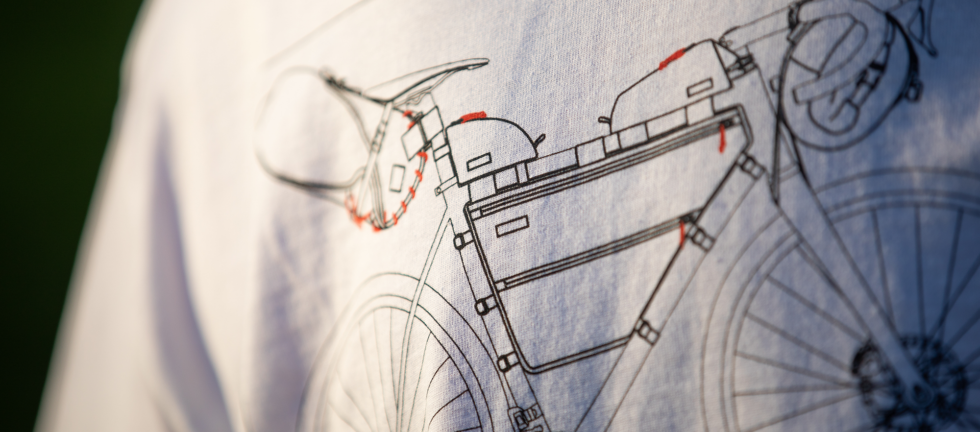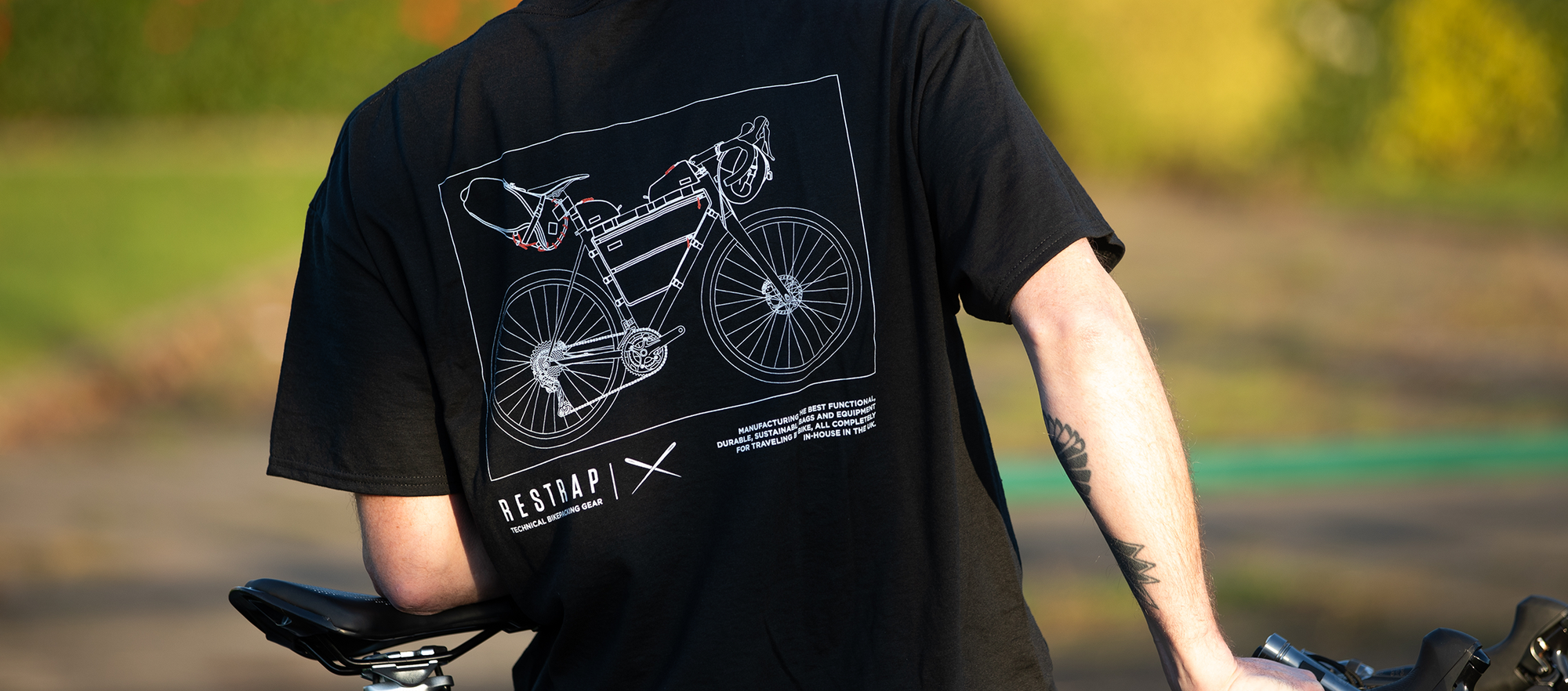 Featuring a technical drawing backprint of a full range of bikepacking equipment on a gravel bike along with our brand statement and a box-logo on the front.