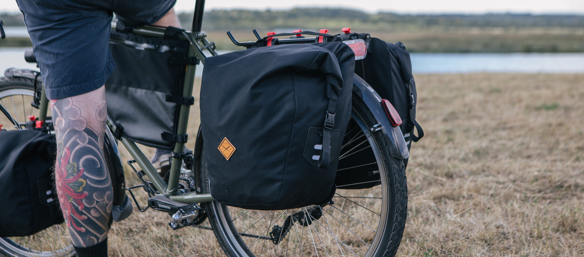 Our sleek roll-top panniers are designed for strength, stability and endurance. Available in small and large for both rear and front racks, they're fitted with side-release buckles and contain a fully adjustable hook system for easy mounting onto 10-16mm rails.