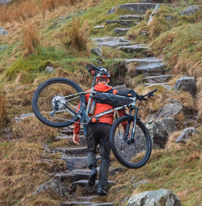 BORN FROM A RECENT SURGE IN OFF-ROAD BIKEPACKING AND RACING, THE HIKE-A-BIKE HARNESS ALLOWS YOU TO CARRY YOUR BIKE ON YOUR BACK FOR LONG SECTIONS OF TRAIL WHERE RIDING SIMPLY ISN’T POSSIBLE.